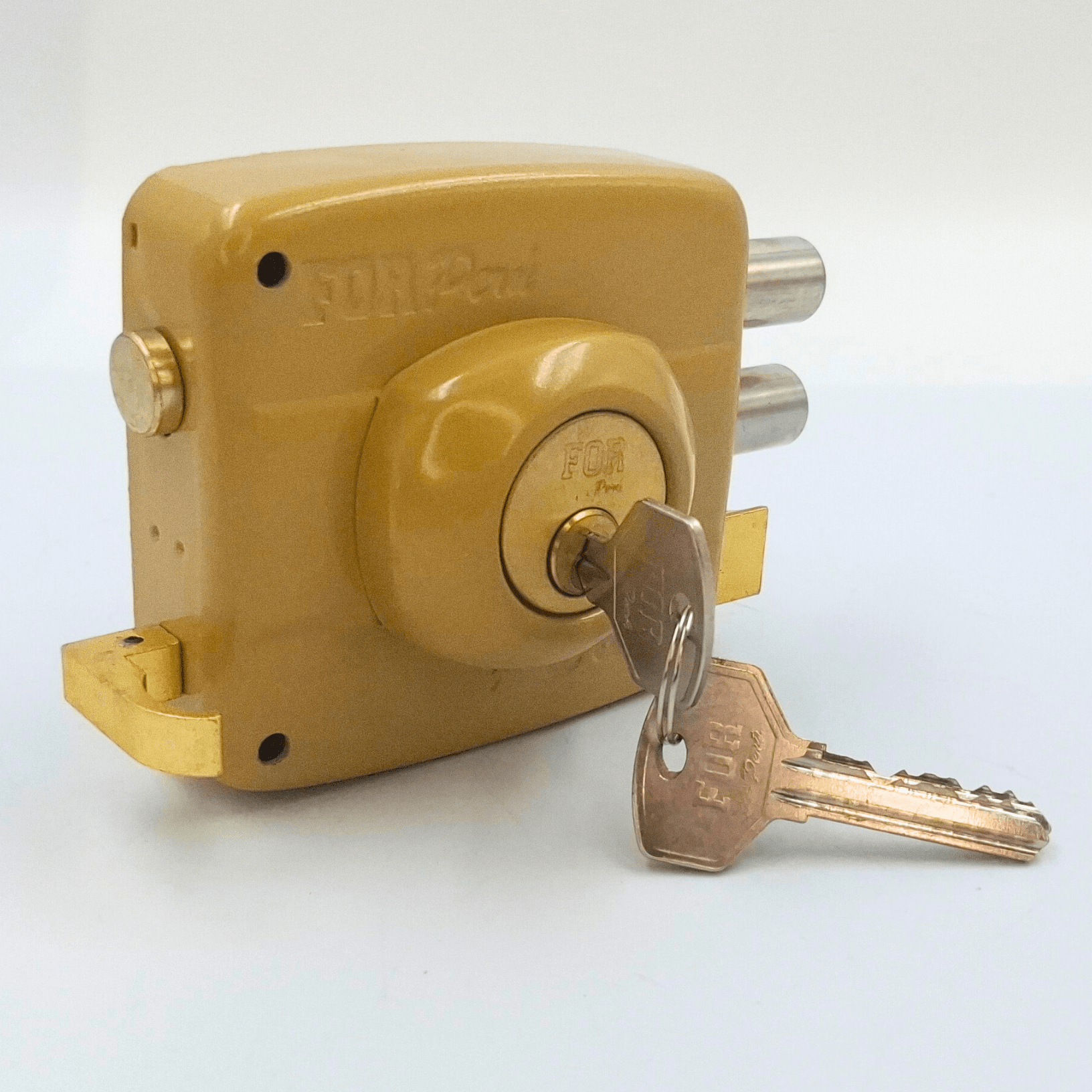 Materiales: | Plancha de Acero, Cilindro y Portacil de Bronce con acabado Dorado Metálico. |